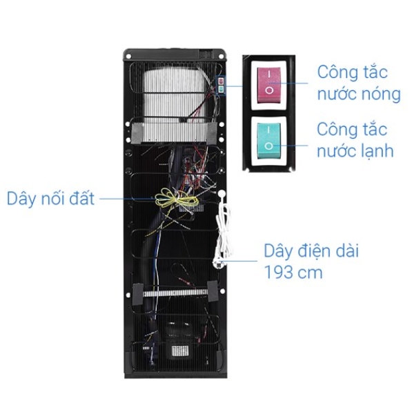 | Tiện ích khác | Khóa vòi nước nóng - Có đèn báo nóng lạnh - Khay hứng nước - Có khoang chứa đựng ly tách |